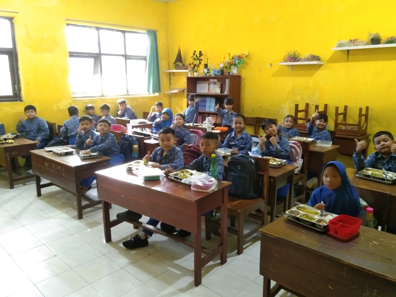 Kegembiraan tampak jelas terlihat dari wajah-wajah ceria siswi SD Negeri 1 Tumpakrejo saat menerima paket MBG. Senyum polos dan antusiasme anak-anak mencerminkan rasa bahagia atas perhatian dan kepedulian yang diberikan melalui program tersebut. Mereka tampak menikmati sajian makanan yang disiapkan dengan menu sehat dan bergizi.
