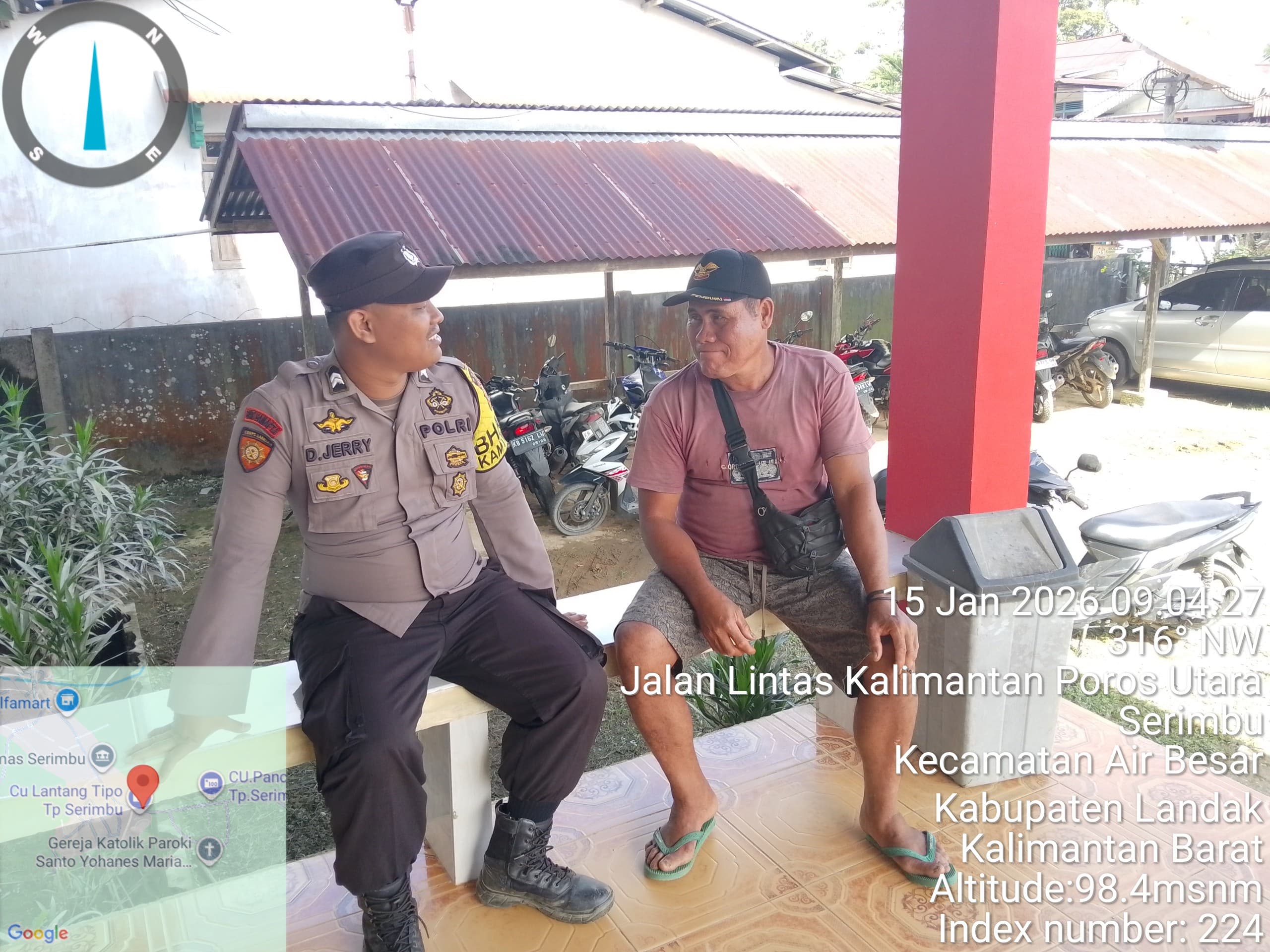 Polsek Air Besar ~ Polres Landak ~ Polda Kalbar, Barometer99.com ~ Guna menciptakan situasi kamtibmas yang aman dan kondusif, jajaran Polsek Air Besar melaksanakan patroli siang dengan pendekatan humanis, Kamis (15/1/2026). Dalam kegiatan tersebut, personel kepolisian tidak hanya melakukan pengawasan wilayah, tetapi juga bercengkrama langsung bersama warga sambil berdiskusi ringan terkait keamanan lingkungan.