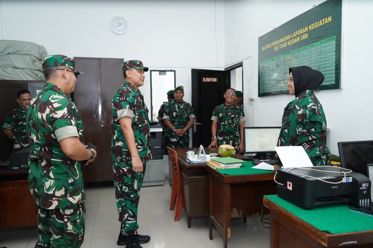Kunjungan diawali di Kudam I/BB, di mana Pangdam menerima laporan dari Kakudam I/BB Letkol Cku Juprihadi, S.E., serta disambut oleh seluruh prajurit dan PNS Kudam I/BB. Kegiatan dilanjutkan dengan foto bersama, peninjauan fasilitas bangunan dan kantor, serta Pangdam menuliskan pesan dan kesan, sebelum memberikan bantuan dukungan fasilitas berupa AC, printer, dan komputer guna mendukung kelancaran pelaksanaan tugas satuan.