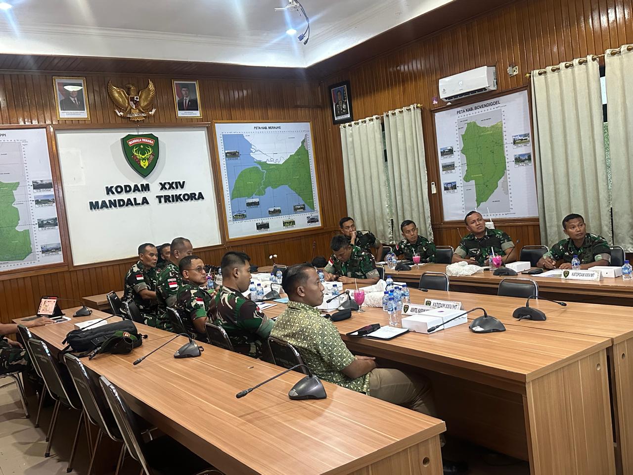 Rapat ini turut dihadiri oleh Pejabat Utama (PJU) Kodam XXIV/Mandala Trikora dan para Asisten Kasdam, sebagai wujud sinergi dan komitmen bersama dalam mendukung kebijakan pimpinan Kodam XXIV/Mandala Trikora.