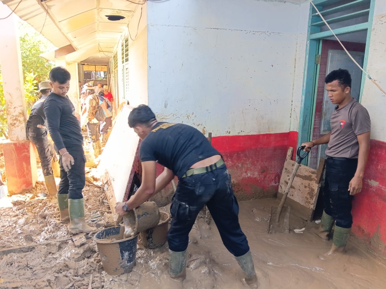 Sebanyak 100 personel Pasbrimob 1 BKO Polres Tapanuli Tengah diterjunkan untuk melakukan pembersihan material lumpur di ruang kelas SD Negeri 158502 Sibuluan, Kecamatan Pandan, serta pendistribusian air bersih kepada masyarakat di wilayah Kecamatan Pandan. Kegiatan ini merupakan bagian dari upaya pemulihan pascabencana yang berdampak pada fasilitas pendidikan dan pemukiman warga.