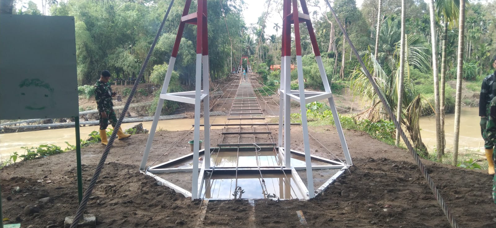 Barometer99.com / Aceh Utara – Pembangunan Jembatan Gantung Garuda di Desa Gampong Teungoh, Kecamatan Sawang, terus dikebut oleh TNI. Jembatan ini nantinya jadi penghubung penting antara Desa Gampong Teungoh, Kabupaten Aceh Utara, dengan Desa Blang Gurun, Kecamatan Gandapura, Kabupaten Bireuen. Buat warga, jembatan ini bukan cuma bangunan, tapi jalur utama buat aktivitas sehari-hari. Kamis (19/2/2026).