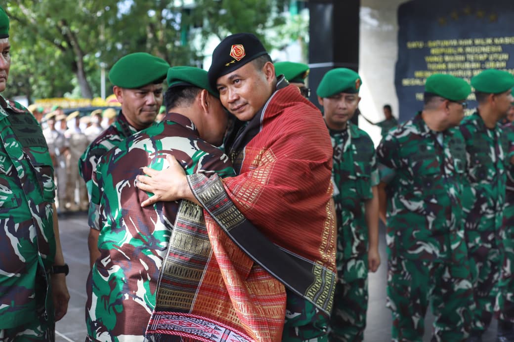 Rangkaian acara dilanjutkan dengan tradisi pengantaran dari Lounge Room hingga gerbang Makodam I/BB. Sebagai bentuk penghormatan adat, Mayjen TNI Rio Firdianto disematkan kain khas Batak, Ulos, sementara Ny. Galuh Rio Firdianto menerima selendang dan bunga tangan dari siswa-siswi SMA Kartika. Sebelum melewati barisan Pedang Pora, Mayjen Rio Firdianto berpamitan dan bersalaman dengan para pejabat utama, asisten Kasdam, Kabalakdam, serta para Danrem jajaran Kodam I/BB.