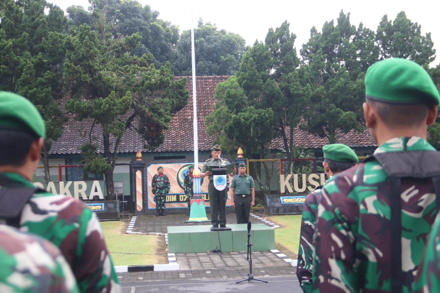 Bertindak selaku Inspektur Upacara, Mayor Inf Istachori yang kesehariannya sebagai Danramil 11/Depok dan diikuti seluruh personel Kodim 0732/Sleman mulai dari Perwira, Bintara, Tamtama, hingga PNS, Seluruh peserta tampak tertib dan disiplin mengikuti setiap rangkaian kegiatan sebagai wujud komitmen terhadap tugas dan tanggung jawab sebagai aparat negara.