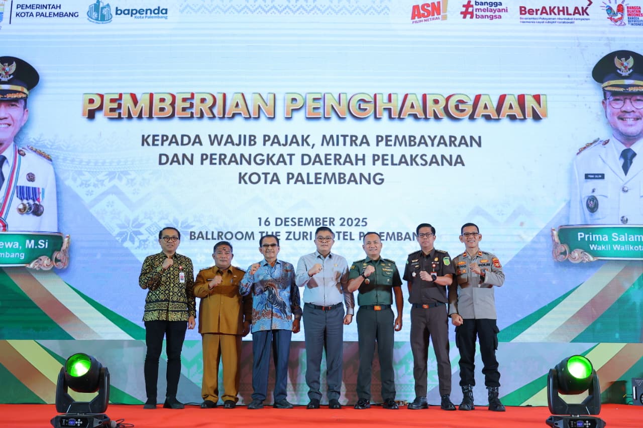 Palembang, Barometer99.com — Pemerintah Kota Palembang melalui Badan Pengelola Pendapatan Daerah (BAPENDA) Kota Palembang menggelar acara pemberian penghargaan kepada para Wajib Pajak, Mitra Pembayaran, serta Perangkat Daerah Pelaksana yang telah menunjukkan kontribusi luar biasa dalam mendukung optimalisasi penerimaan pajak daerah sepanjang tahun 2025.