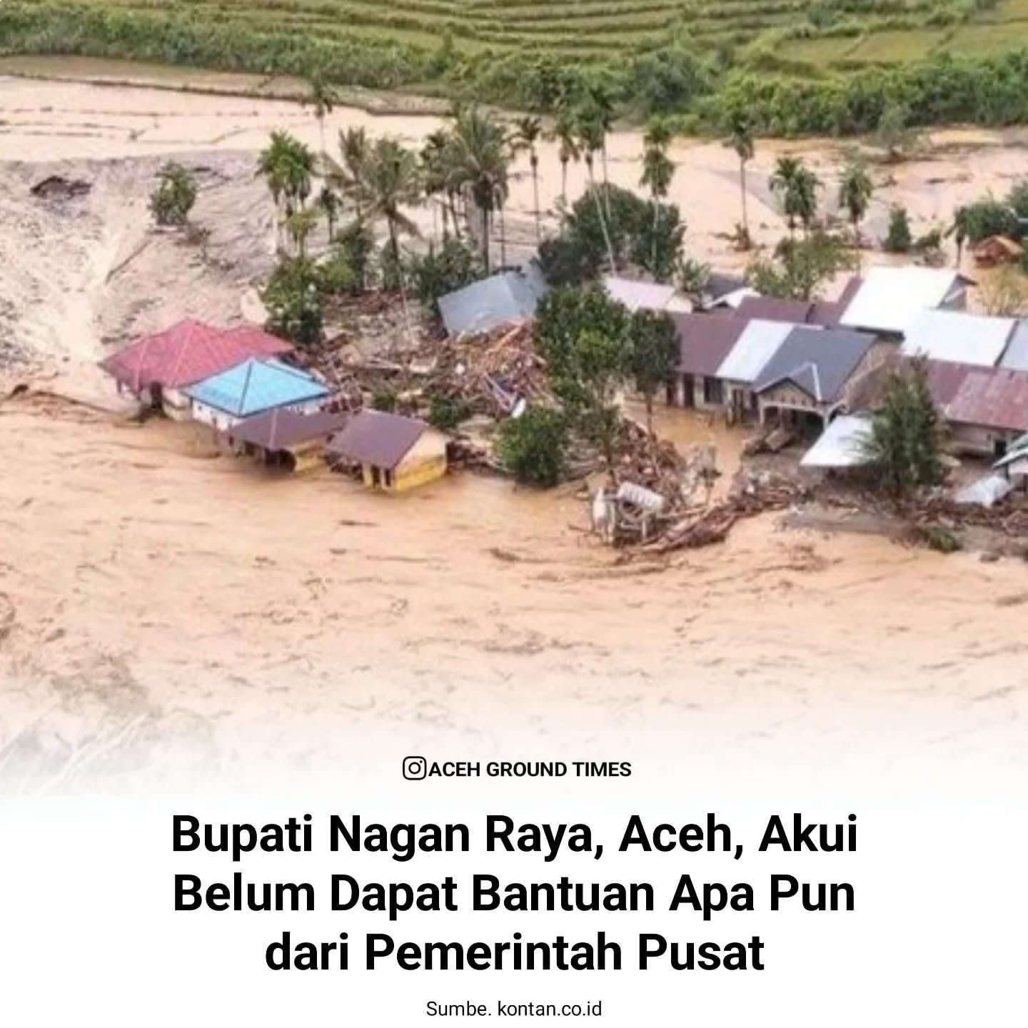 Bupati Nagan Raya, Teuku Raja Keumangan, mengatakan hingga Kamis (4/12/2025), pemerintah daerah belum menerima bantuan apa pun dari pemerintah pusat.