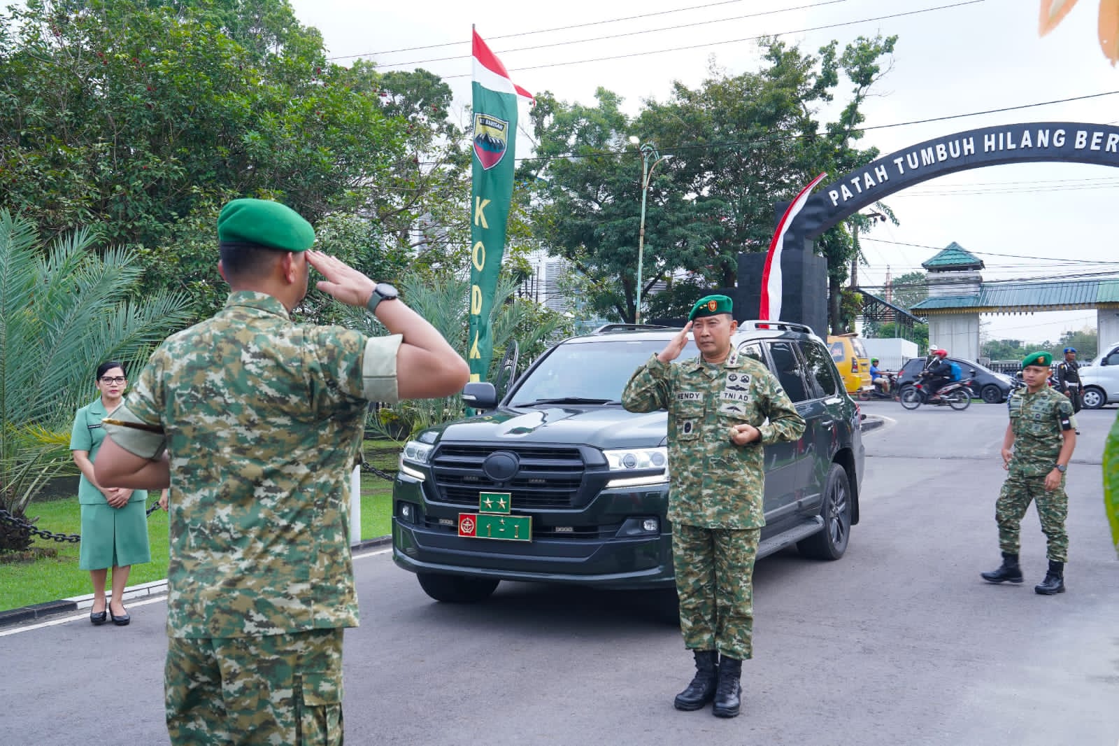 Setibanya di pintu gerbang Makodam I/BB, Mayjen TNI Hendy Antariksa menerima laporan resmi dari Dandenmadam I/BB, dilanjutkan dengan penghormatan dan laporan dari Pos I serta regu jajar. Prosesi ini merupakan bagian dari tata upacara militer penyambutan pejabat baru Pangdam I/BB.