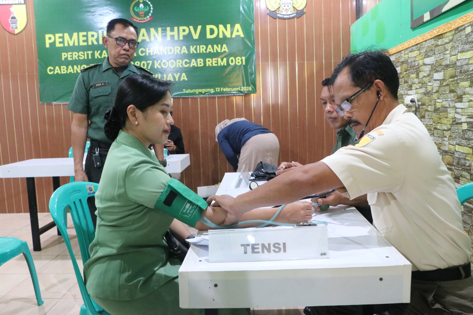 Tulungagung, Barometer99.com – Anggota Persit KCK Cabang XXI Dim 0807 Koorcab Rem 081 PD V/Brawijaya mengikuti penyuluhan kesehatan jantung serta pemeriksaan CKG-EKG dan HPV DNA di Polkes 05.09.09 Tulungagung, Kamis (12/2/2026).