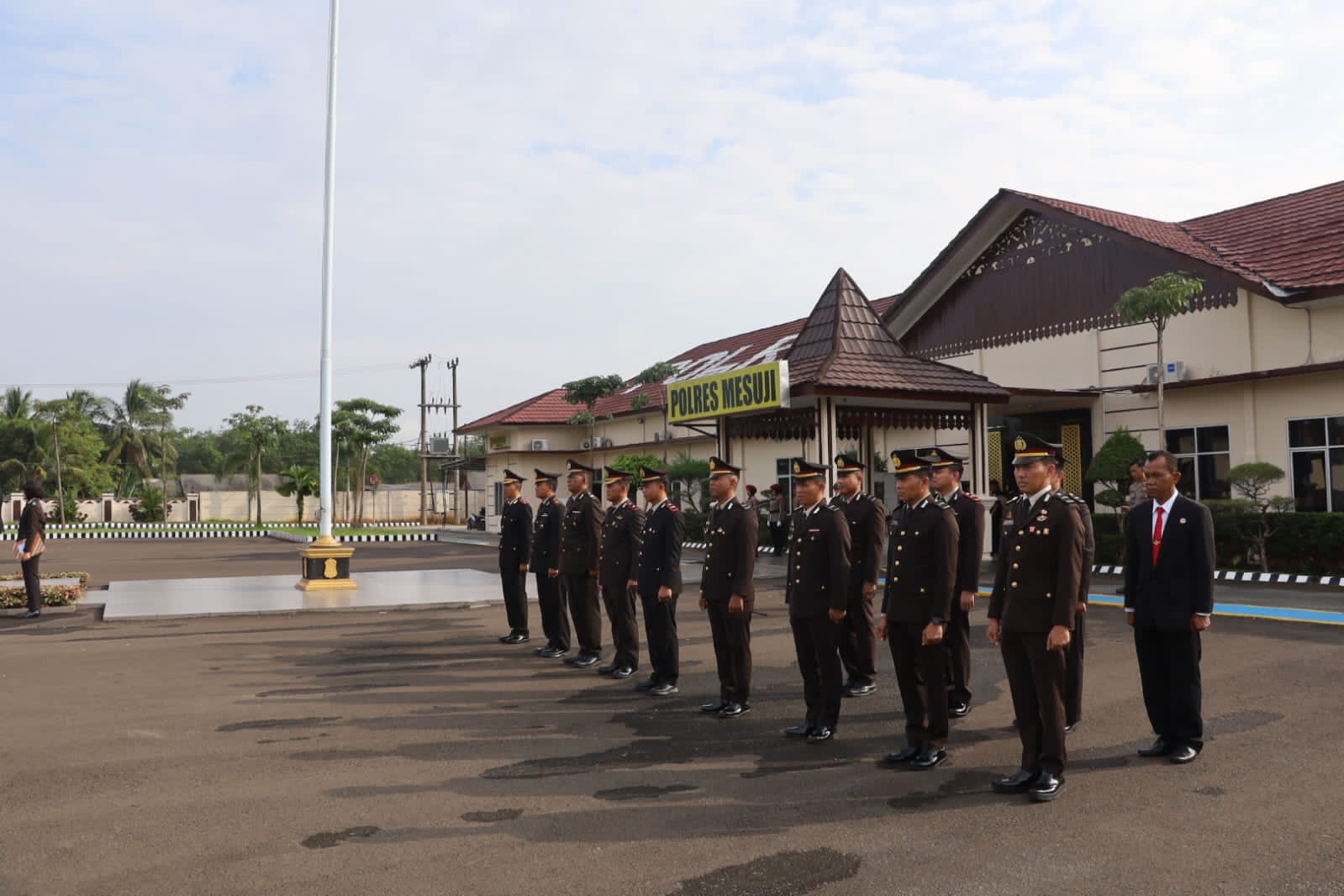 Upacara dipimpin langsung oleh Kapolres Mesuji AKBP Dr. Muhammad Firdaus S.Ik, M.H dengan di ikuti oleh seluruh PJU Polres Mesuji dan Personil Polres Mesuji.