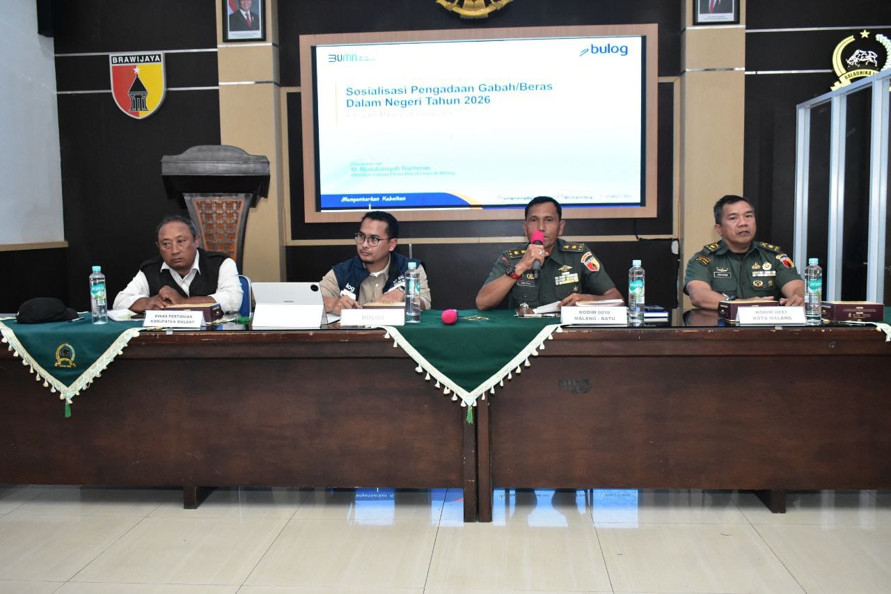 Malang, Barometer99.com – Kodim 0818/Malang-Batu menegaskan komitmennya dalam mendukung kedaulatan pangan nasional. Hal ini dibuktikan dengan digelarnya kegiatan Sosialisasi Pengadaan Gabah/Beras Dalam Negeri Tahun 2026 oleh Perum Bulog yang bertempat di Aula Kodim 0818/Malang-Batu, Rabu (28/01/2026).
