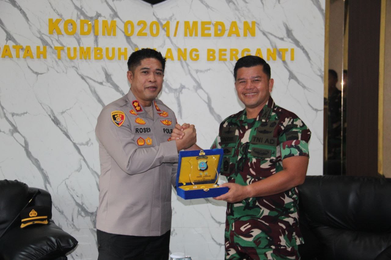 MEDAn, Barometer99.com – Guna memperkuat dan meningkatkan sinergitas TNI Polri yang selama ini sudah terjalin dengan baik ,Dandim 0201/Medan Kolonel Inf Radhi Rusin S.I.P,menerima kunjungan silaturahmi Kapolres Belawan AKBP Rosef Efendi S.I.K M.H. CPRH,Senin 26 Januari 2026.Silaturahmi berlangsung hangat tersebut digelar di ruang Makodim 0201/Medan Jalan Pengadilan,Medan.