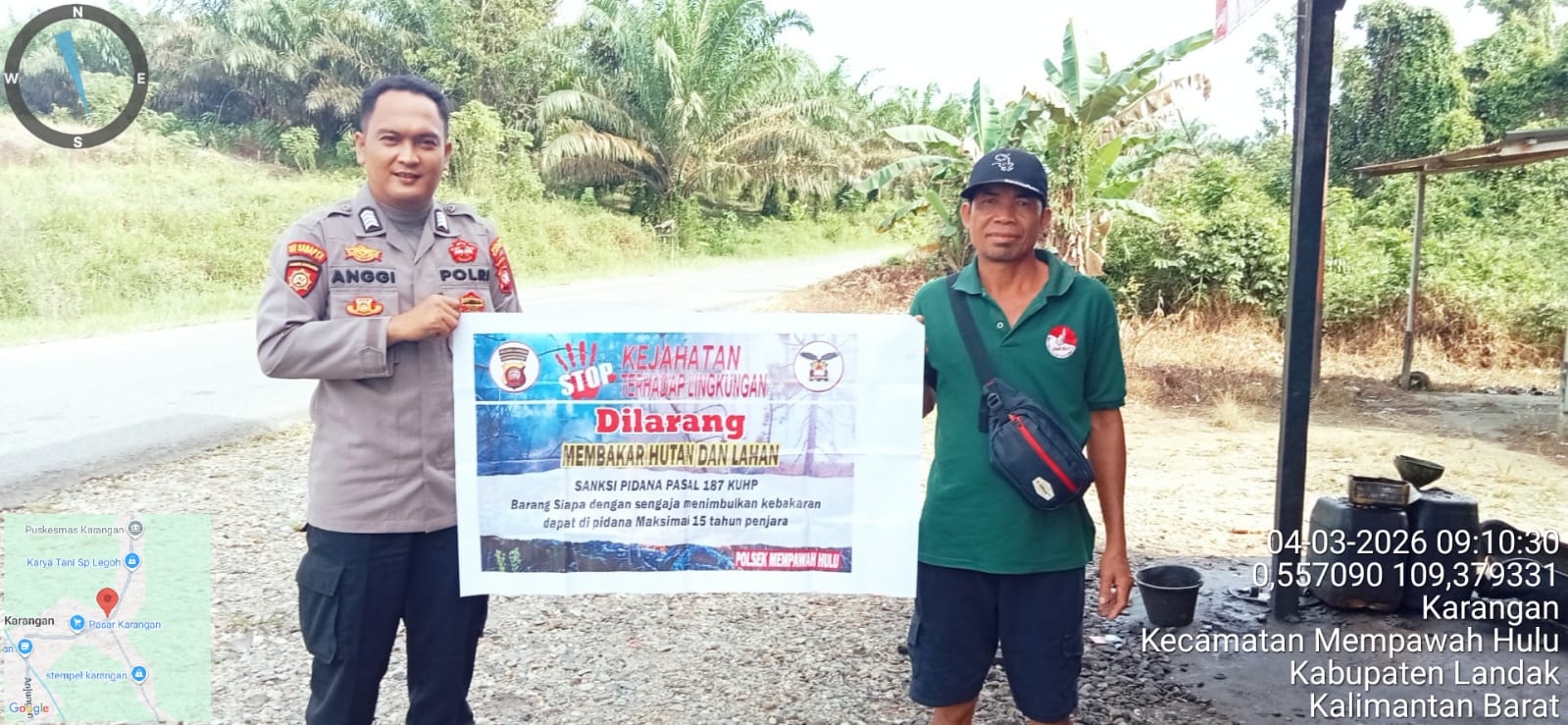 Mempawah Hulu, Barometer99.com – Dalam upaya mencegah terjadinya kebakaran hutan dan lahan (karhutla), Personel Polsek Mempawah Hulu terus menggencarkan kegiatan sosialisasi kepada masyarakat di wilayah Kecamatan Mempawah Hulu, Rabu (4/3/26).