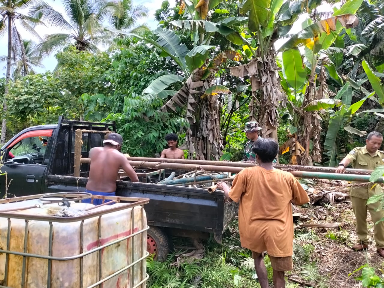 Personel TMMD Ke-127 Kodim 1514/Morotai Pasang Mesin Bor Air di Desa Falila