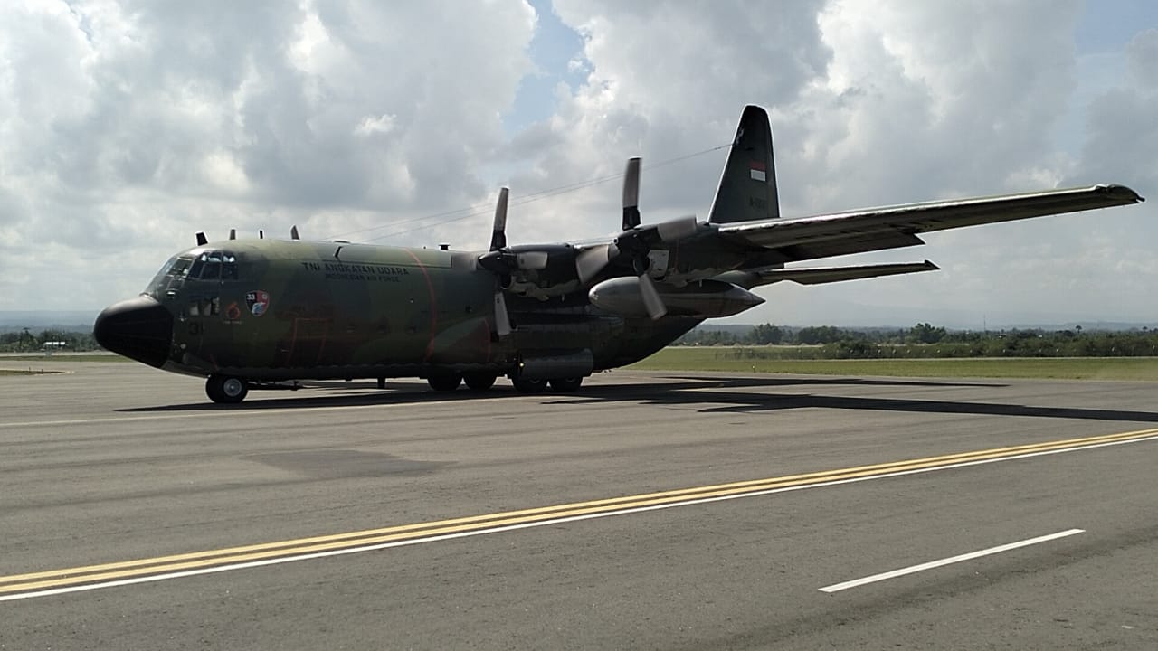 Pesawat Hercules C-130 TNI AU Tiba di Bandara Malikussaleh, Dukung Satgas Pascabencana
