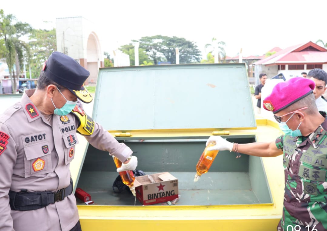 Barang bukti yang dimusnahkan terdiri dari Minuman Golongan A sebanyak 219 botol dan 149 kaleng