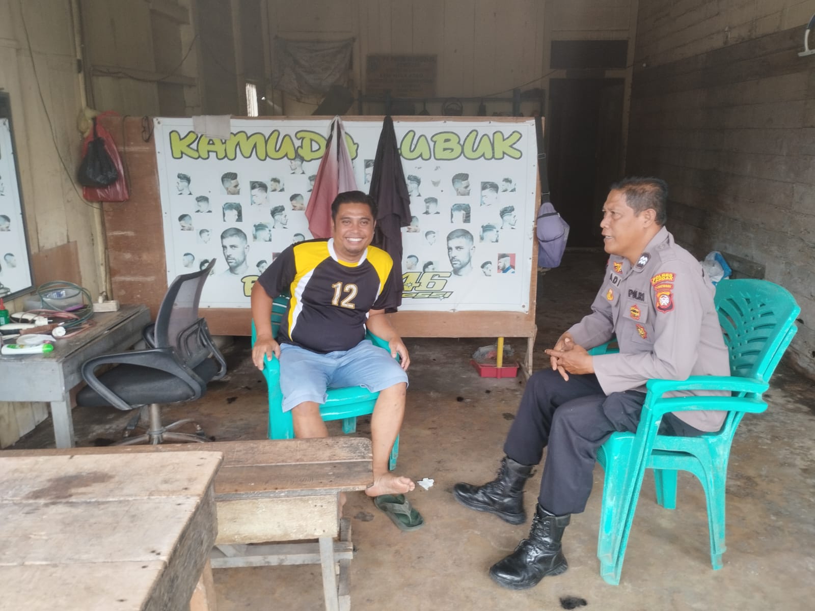 Minggu (26/4/2026), personel kepolisian melaksanakan patroli siang dengan menyambangi salah satu tukang cukur rambut di wilayah Kecamatan Mandor. Dalam suasana santai namun penuh keakraban, petugas berdialog langsung dengan warga yang tengah beraktivitas, sekaligus menyampaikan pesan-pesan kamtibmas.