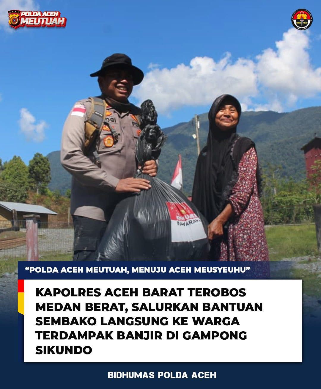 Meulaboh, Barometer99.com –  Wujud kepedulian terhadap masyarakat terdampak bencana banjir kembali ditunjukkan oleh jajaran Polres Aceh Barat. Pada Selasa (13/1/2026), Kapolres Aceh Barat, AKBP Yhogi Hadisetiawan, S.I.K., M.I.K., memimpin langsung kegiatan penyaluran bantuan sembako sekaligus pengobatan gratis bagi warga Gampong Sikundo, Kecamatan Pante Ceureumen – salah satu wilayah paling terpencil yang sempat terisolasi akibat banjir.