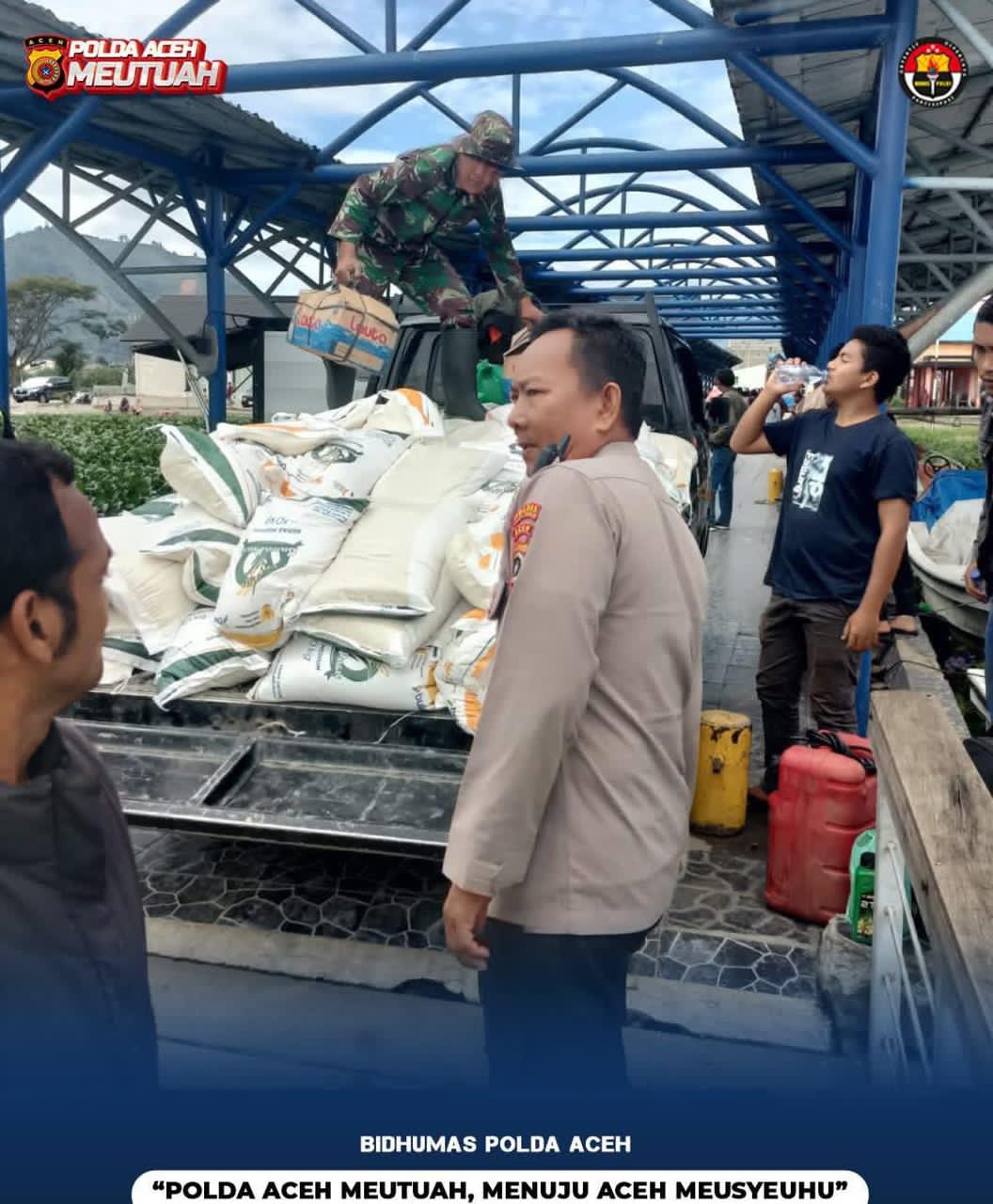 Polres Aceh Tengah bersama TNI dan pemerintah kecamatan bergerak cepat menyalurkan bantuan pangan bagi warga terdampak, Minggu (14/12/2025).