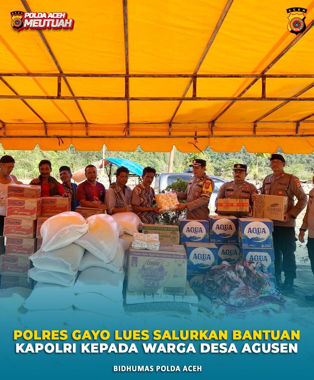 Penyaluran bantuan tersebut merupakan bentuk kepedulian Polri terhadap masyarakat yang terdampak bencana hidrometeorologi yang melanda sejumlah wilayah di Kabupaten Gayo Lues. Bantuan diserahkan langsung kepada warga Desa Agusen sebagai upaya meringankan beban masyarakat pascabencana.