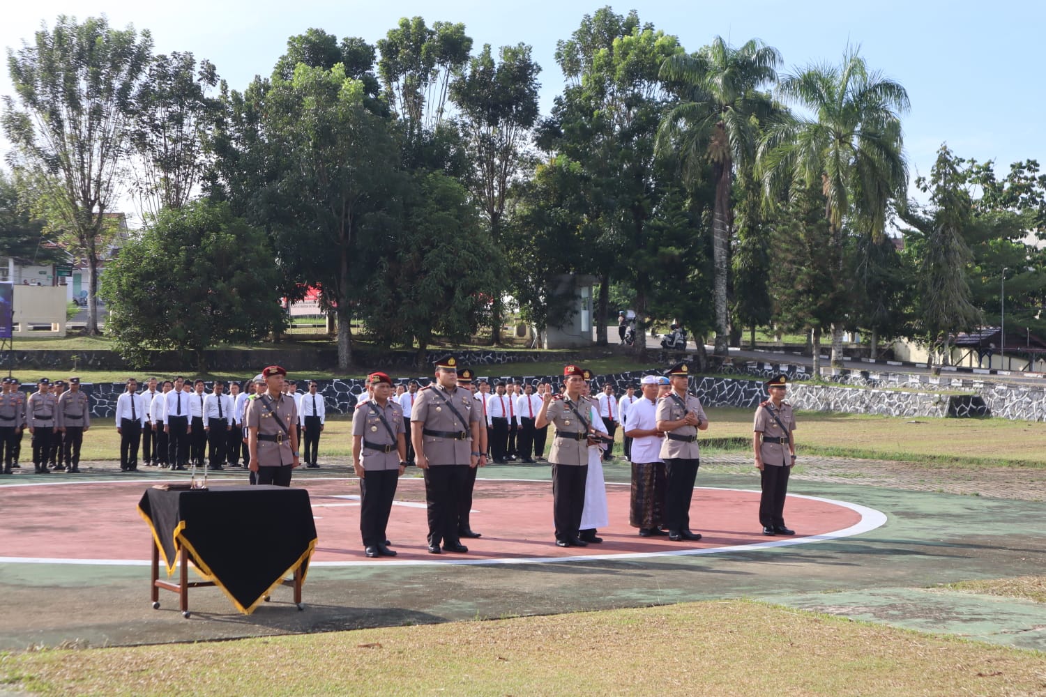Upacara juga diikuti oleh Peleton personel gabungan dari Bag, Sat, Sie, serta PNS Polri Polres Landak, dengan Kanit Gakkum Satlantas Polres Landak Ipda Florensius Almiso, S.H. bertindak selaku Komandan Upacara.