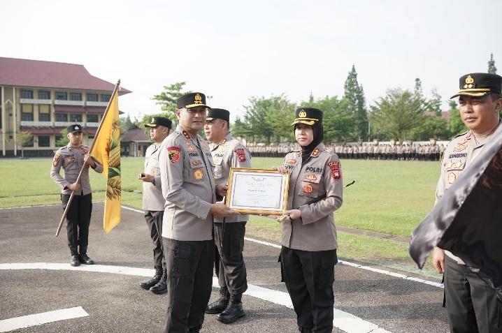 Penghargaan bergengsi tersebut diserahkan langsung oleh Kapolda Kalbar, Irjen Pol Pipit Rismanto, S.I.K., M.H., kepada Kapolres Landak AKBP Devi Ariantari, S.H., S.I.K., dalam sebuah upacara resmi yang berlangsung khidmat di lapangan apel.