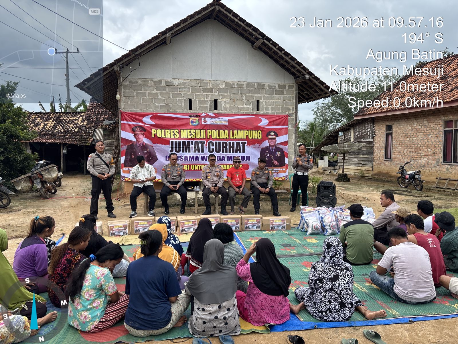 Polres Mesuji Gelar Jumat Curhat di Desa Labuhan Permai, Salurkan 25 Paket Sembako untuk Warga