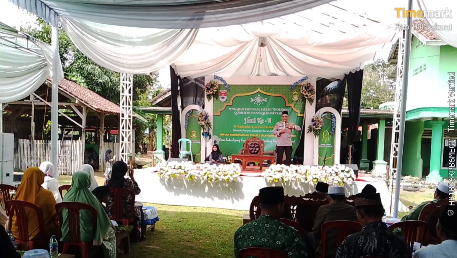 Mesuji, Lampung, Barometer99.com — Kapolres Mesuji diwakili oleh Kabag SDM menghadiri Pengajian tahunan Jamaah Thoriqoh Qodiriyah Wannaqsabandiyah, Haul ke 12 Al Maghfurlah Kyai Abdul Wahab Al – Hajj, Haflah Akhirussanah Ponpes Salafiyah Darul Isti’anah Desa Suka Agung Kecamatan Way Serdang Kabupaten Mesuji. Sabtu (24/01/26)