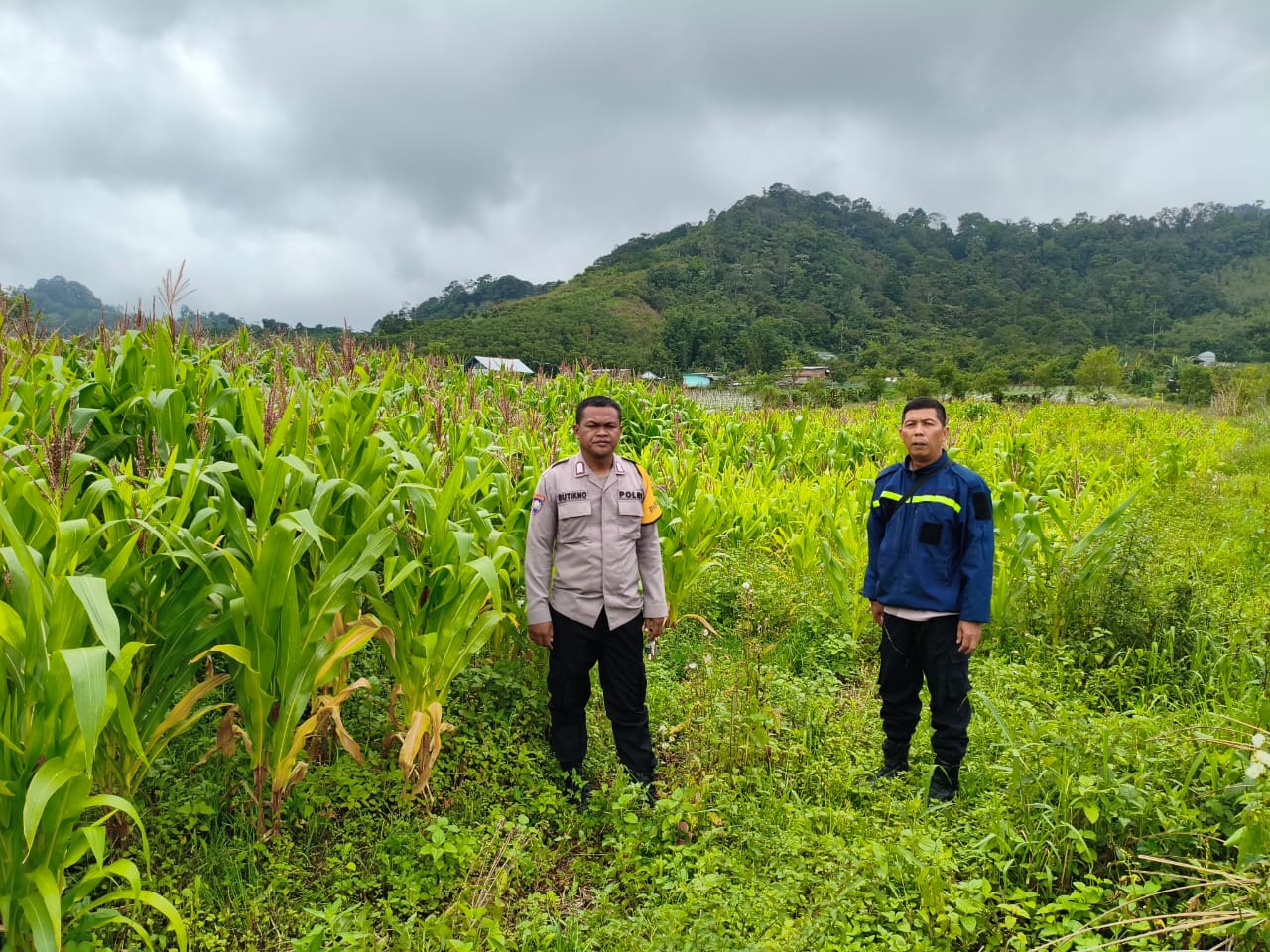 Didampingi Penyuluh Pertanian Lapangan (PPL) dan warga binaan, Bhabinkamtibmas melakukan pengecekan lahan jagung pakan seluas sekitar satu hektar. Kegiatan ini menjadi bagian dari peran Polri sebagai penggerak ketahanan pangan dalam mendukung program prioritas Presiden RI Prabowo Subianto menuju swasembada pangan nasional.