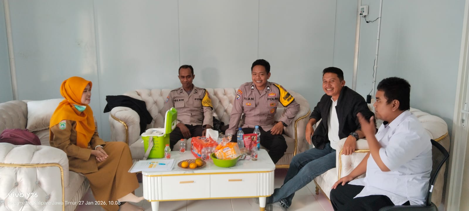 Kedatangan rombongan Polsek Kalipare dan tenaga kesehatan tersebut disambut dengan penuh kehangatan oleh Ahmad Andre Rifqiarno, S.T., selaku Kepala Dapur MBG Desa Putukrejo. Suasana koordinasi berlangsung akrab dan penuh kekeluargaan, mencerminkan sinergitas yang baik antar instansi dalam mendukung kelancaran Program Makan Bergizi Gratis (MBG).