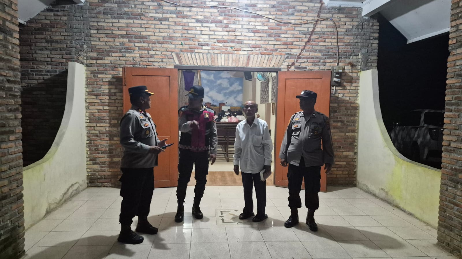Pengamanan ibadah dilakukan oleh Kompol Cecep Suhendra beserta personel yang terdiri dari AKP P.Situngkir, Aiptu M.Manurung, dan Aipda Dani Efendi. Mereka melakukan pengawasan dari luar dan dalam area gereja untuk memastikan kelancaran ibadah tanpa gangguan.