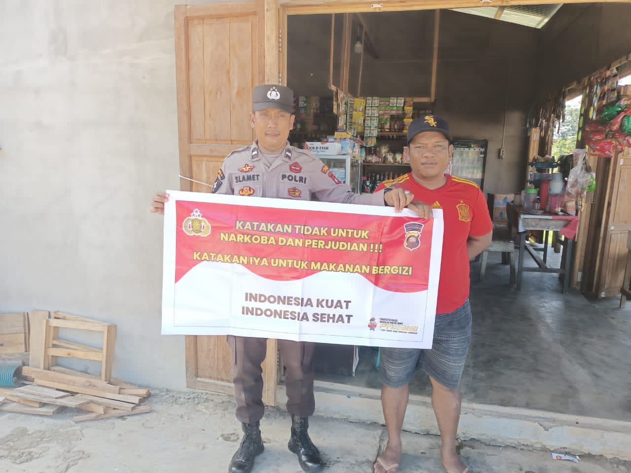 Kegiatan tersebut dilaksanakan dengan cara pemasangan dan penyampaian pesan kamtibmas melalui media spanduk bertuliskan “Katakan Tidak Untuk Narkoba dan Perjudian!!! Katakan Iya Untuk Makanan Bergizi. Indonesia Kuat Indonesia Sehat” yang disampaikan langsung kepada warga dan pemilik warung setempat.