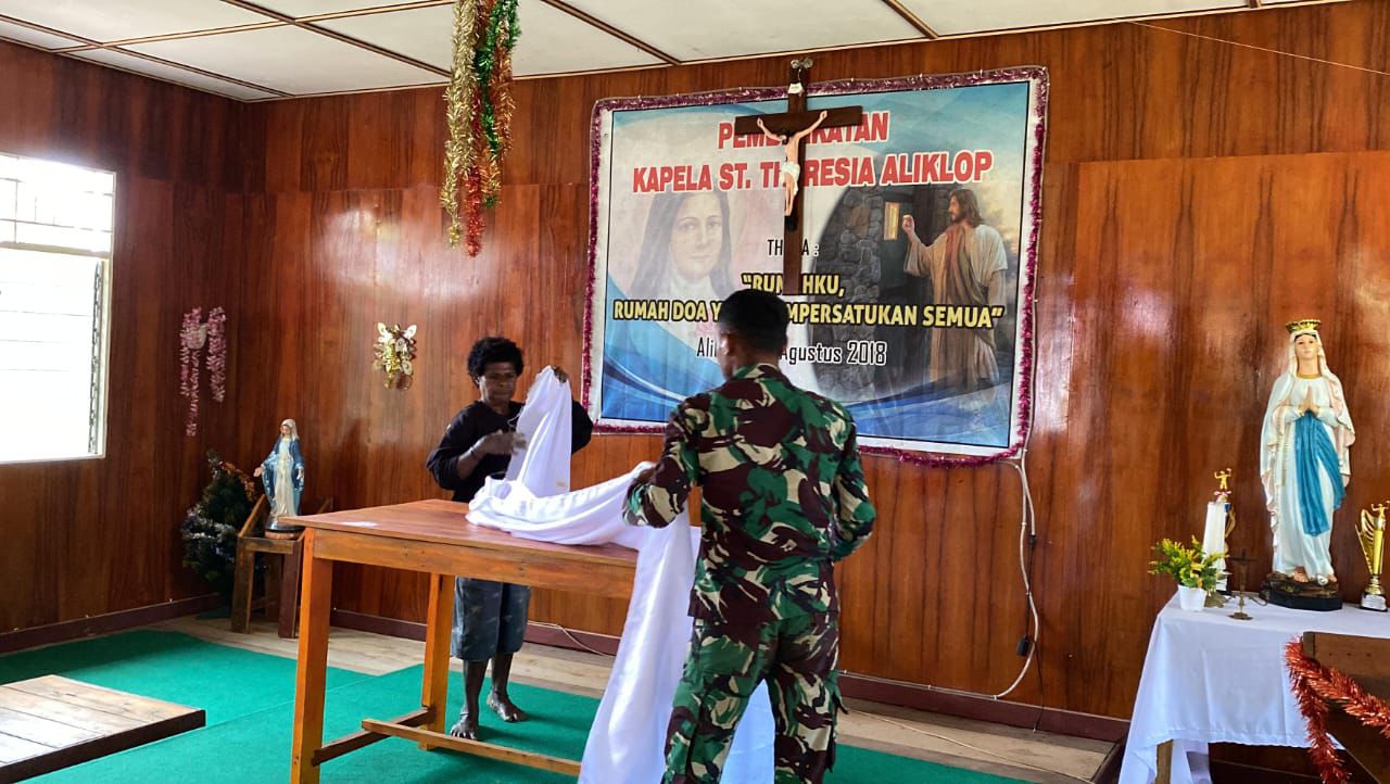 Pembersihan dilakukan menyeluruh di area dalam dan luar gereja, meliputi penyapuan dan pengepelan lantai, pembersihan mimbar serta bangku jemaat, perapihan halaman, hingga penataan lingkungan sekitar agar akses menuju gereja aman dan tertib. Selama kegiatan berlangsung, prajurit dan warga bekerja bahu membahu dalam suasana kekeluargaan, sekaligus mempererat silaturahmi dan komunikasi dua arah.