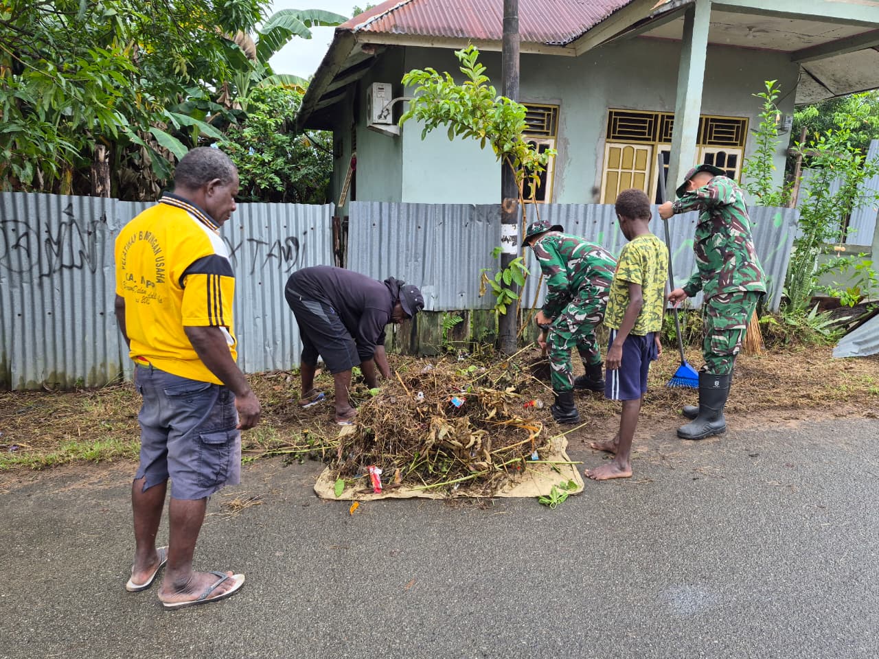 Kabupaten Mappi, Papua Selatan, Barometer99.com – Pos Kotis Satgas Yonif 123/Rajawali melaksanakan kegiatan karya bhakti yang terfokus di sekitar Pelabuhan Kepi, Jl. Wogi RT 1, Kecamatan Obaa, pada hari Jumat (19 Desember 2025). Kegiatan ini menjadi bagian dari serangkaian program kemitraan dengan masyarakat setempat guna meningkatkan kebersihan dan kenyamanan di area yang menjadi pintu masuk penting Kabupaten Mappi.
