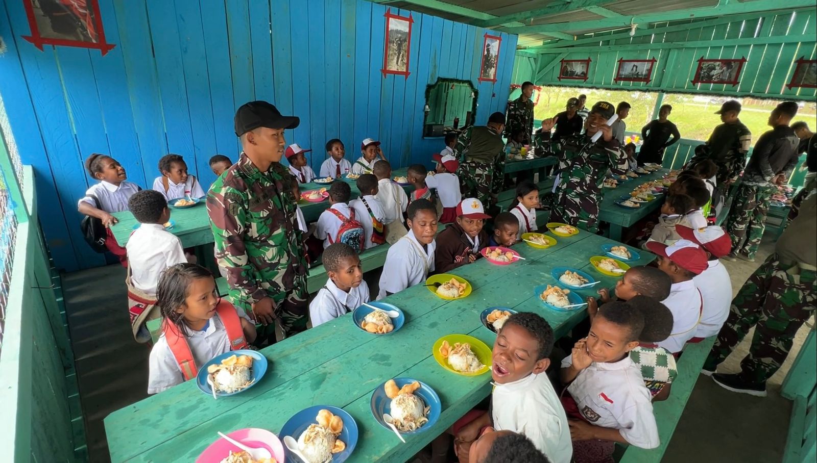 Pos Kotis Satgas Yonif 751/VJS Kembali Gelar Makan Bersama untuk Siswa: Sepulang Sekolah, Diselingi Edukasi Berhitung