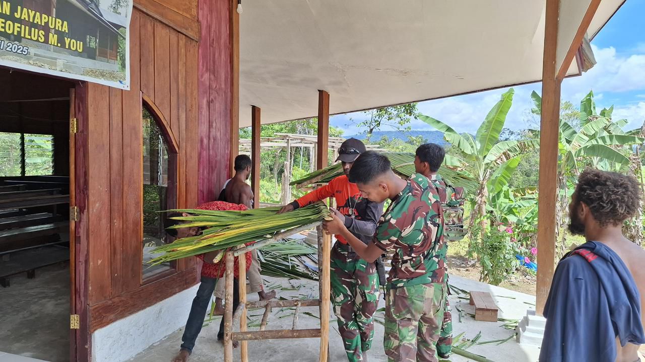 Pos Selal Satgas Yonif 751/VJS Bersama Warga Kalomdol Bangun Pondok Natal: Sambut Perayaan dengan Sukacita dan Kebersamaan