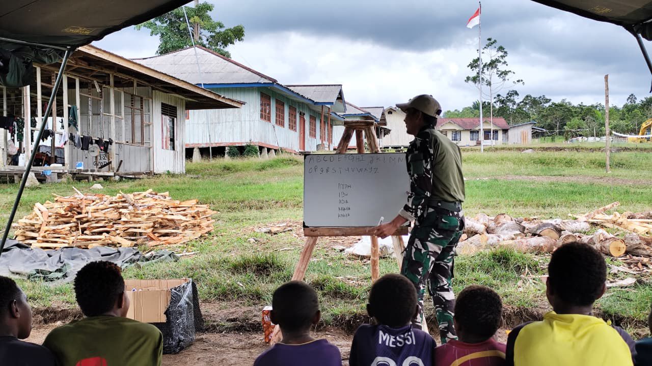 Pos Tarub Satgas Yonif 751/VJS Gelar Kelas Calistung di Lapangan Serba Guna: Bekali Anak Perbatasan, Bangun Generasi Papua Lebih Maju