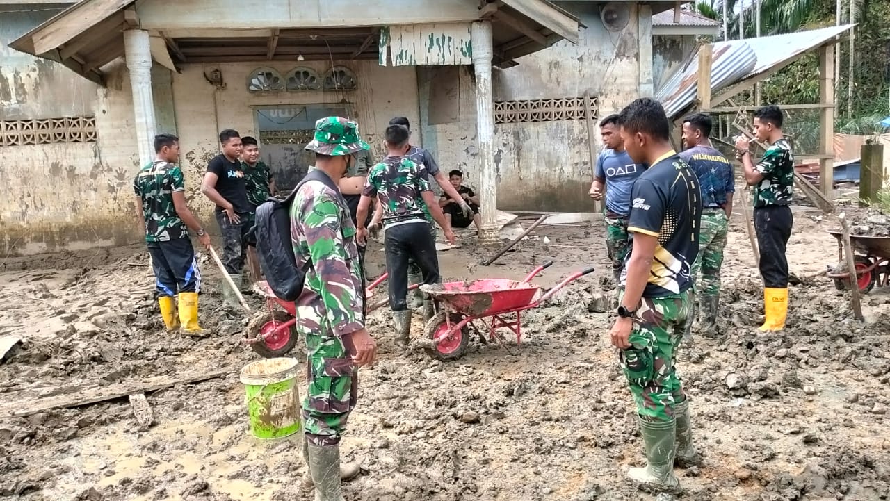 Ia menegaskan bahwa meskipun medan di lapangan masih sangat licin dan berlumpur, semangat 15 personel Yon Kav 11/MSC dan Babinsa Serda Ardan tetap tinggi untuk memberikan rasa nyaman bagi masyarakat Dusun Lubuk Muku melalui penyediaan ruangan musola yang bersih dari sisa-sisa bencana.