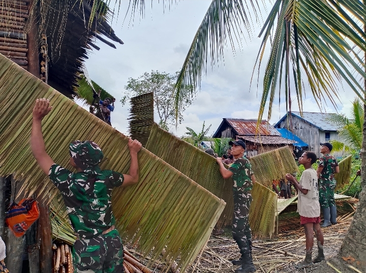 FAYIT, PAPUA, Barometer99.com – Semangat kebersamaan dan pelestarian budaya kental terasa di Kampung Basim, Distrik Fayit, Kabupaten Asmat. Pos Fayit Satuan Tugas (Satgas) Kewilayahan Yonif 123/Rajawali, bahu-membahu dengan Ketua Adat Kampung Basim dan Kepala Distrik Fayit, sukses melaksanakan pembangunan rumah adat bujang (Jew) yang merupakan bagian tak terpisahkan dari tradisi Suku Asmat. Minggu (29/03/2026)