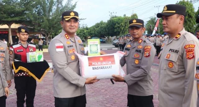 Bantuan bibit pertanian tersebut diserahkan secara simbolis oleh Kapolres kepada perwakilan Kapolsek jajaran Polres Aceh Timur pada Senin. (19/01/2026).