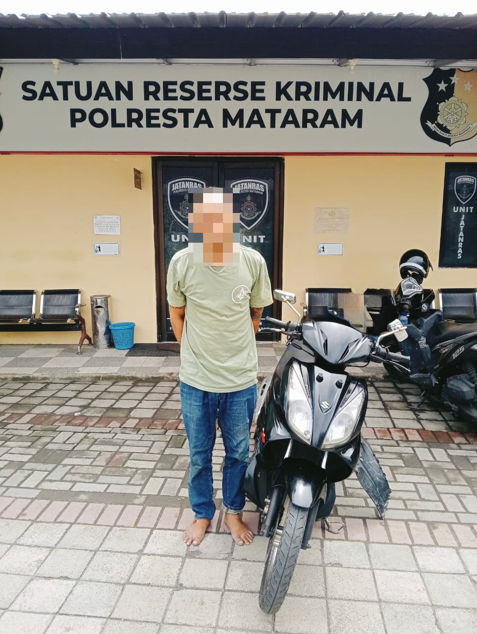 “Berdasarkan pengakuan terduga, tim bergerak ke Lombok Timur dan berhasil mengamankan barang bukti berupa sepeda motor milik korban,” jelas Iptu Taufik.