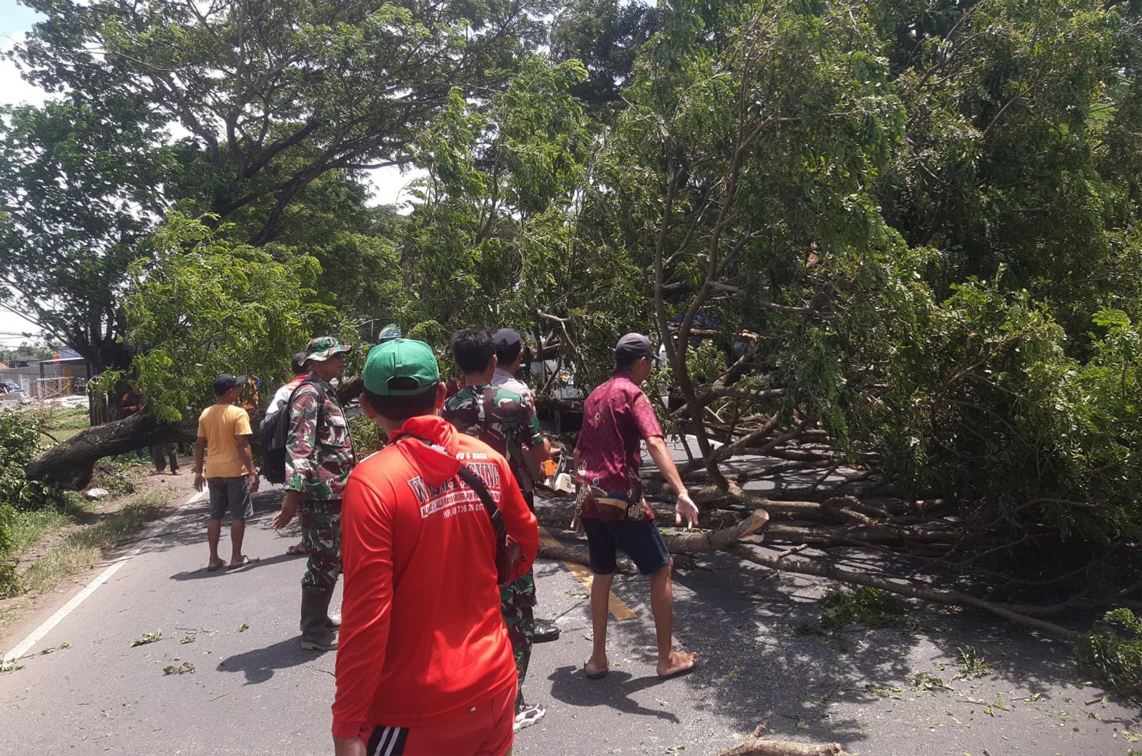 “Pohon tumbang ini menimpa truk bermuatan pasir dan pengendara sepeda motor, serta memutus kabel listrik. Kondisi tersebut cukup membahayakan, sehingga kami bersama TNI, Polri, dan BPBD segera melakukan evakuasi di lokasi,” ujar Peltu Wasito.