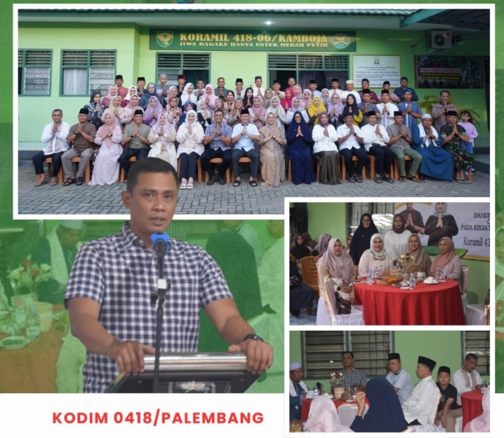 PALEMBANG, IntensNews.id – Komandan Kodim 0418/Palembang, Letkol Arh Erik Novianto,S.Sos.,dan Ketua Persit KCK Cabang XLII Ny,Hayu Erik Novianto melaksanakan kegiatan Safari Ramadan 1447 H Tahun 2026 bersama di Makoramil 418-06/Kamboja, Jalan Mayor Santoso RT 24 RW 09, Kelurahan 20 Ilir D-3, Kecamatan Ilir Timur I, Kota Palembang, Senin (2/3/2026).
