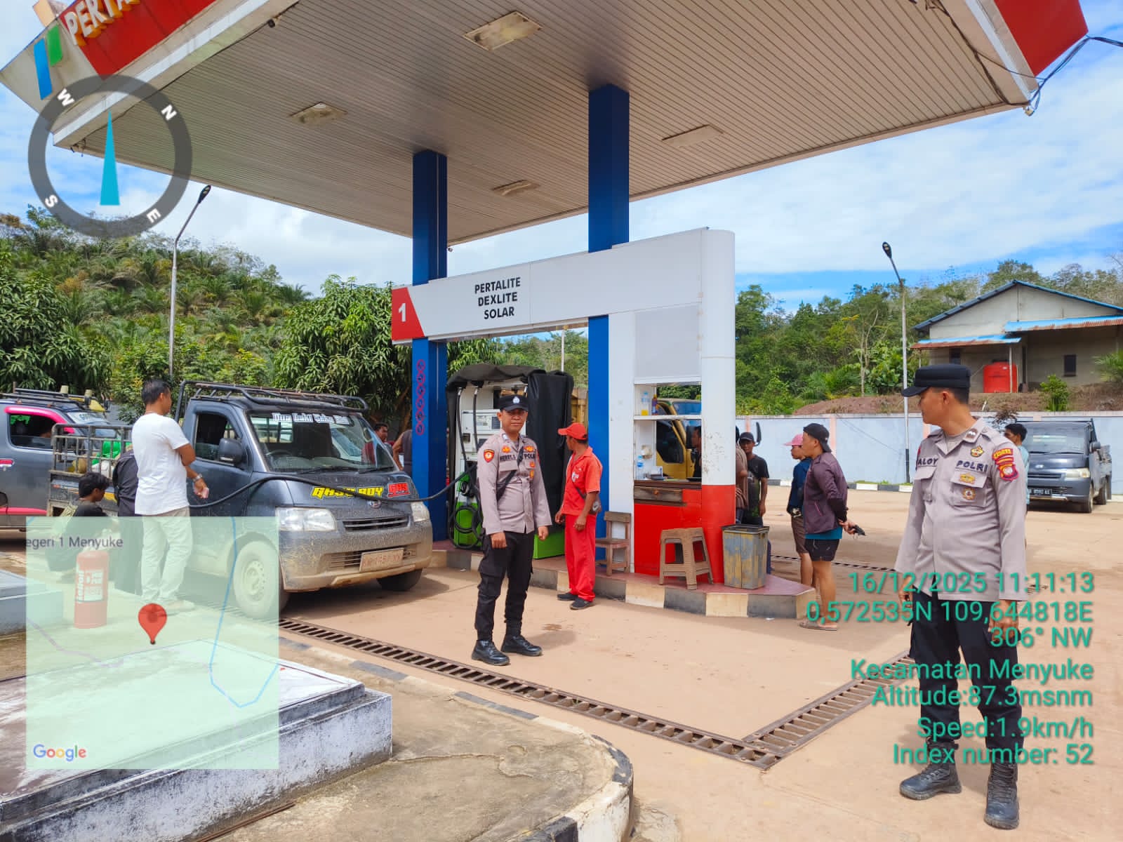 Polsek Menyuke – Polres Landak, Polda Kalbar, Samapta Polsek Menyuke Polres Landak Aipda Aloysius Aloy dan Brigadir Herry Setyawan melaksanakan kegiatan patroli ke SPBU yang ada di Kecamatan Menyuke, Kabupaten Landak, Selasa (16/12/2025) Siang.