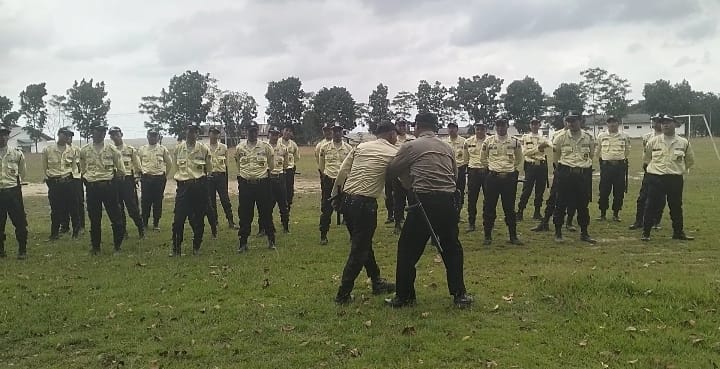 Mesuji, Lampung, Barometer99.com -Satpam PT. SIP mendapatkan pembinaan dan pelatihan beladiri Polri serta Dril Tongkat T Polri dari Jajaran Sat Binmas Polres Mesuji.