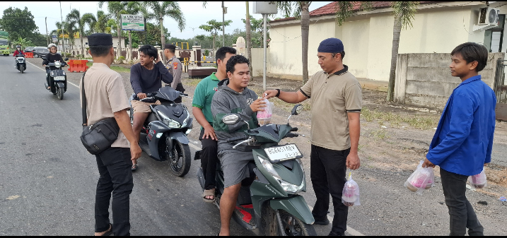 Sat Intelkam Polres Mesuji Bersama BEM STIES Darul Huda Berbagi Takjil kepada Pengguna Jalan di Bulan Ramadhan