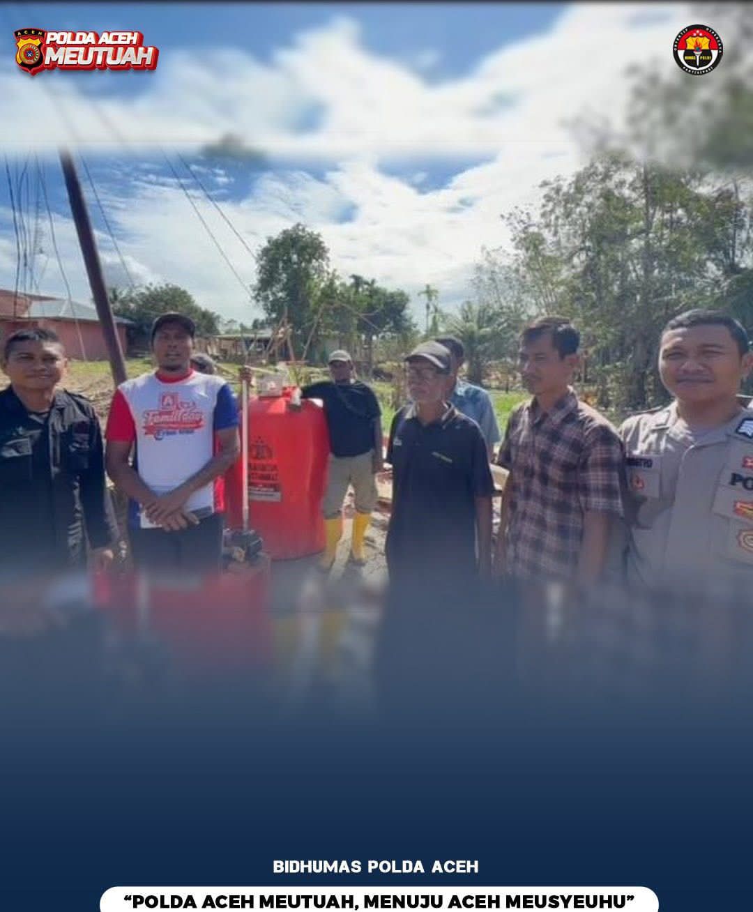 Kabid Humas Polda Aceh Kombes Pol. Joko Krisdiyanto, S.I.K., dalam keterangannya menyampaikan bahwa personel Satbrimob Polda Aceh pada Jumat, 19 Desember 2025, telah berhasil merealisasikan pembangunan sumur bor dan menyalurkan sarana pendukung air bersih tersebut untuk kepentingan masyarakat di Kabupaten Aceh Tamiang.