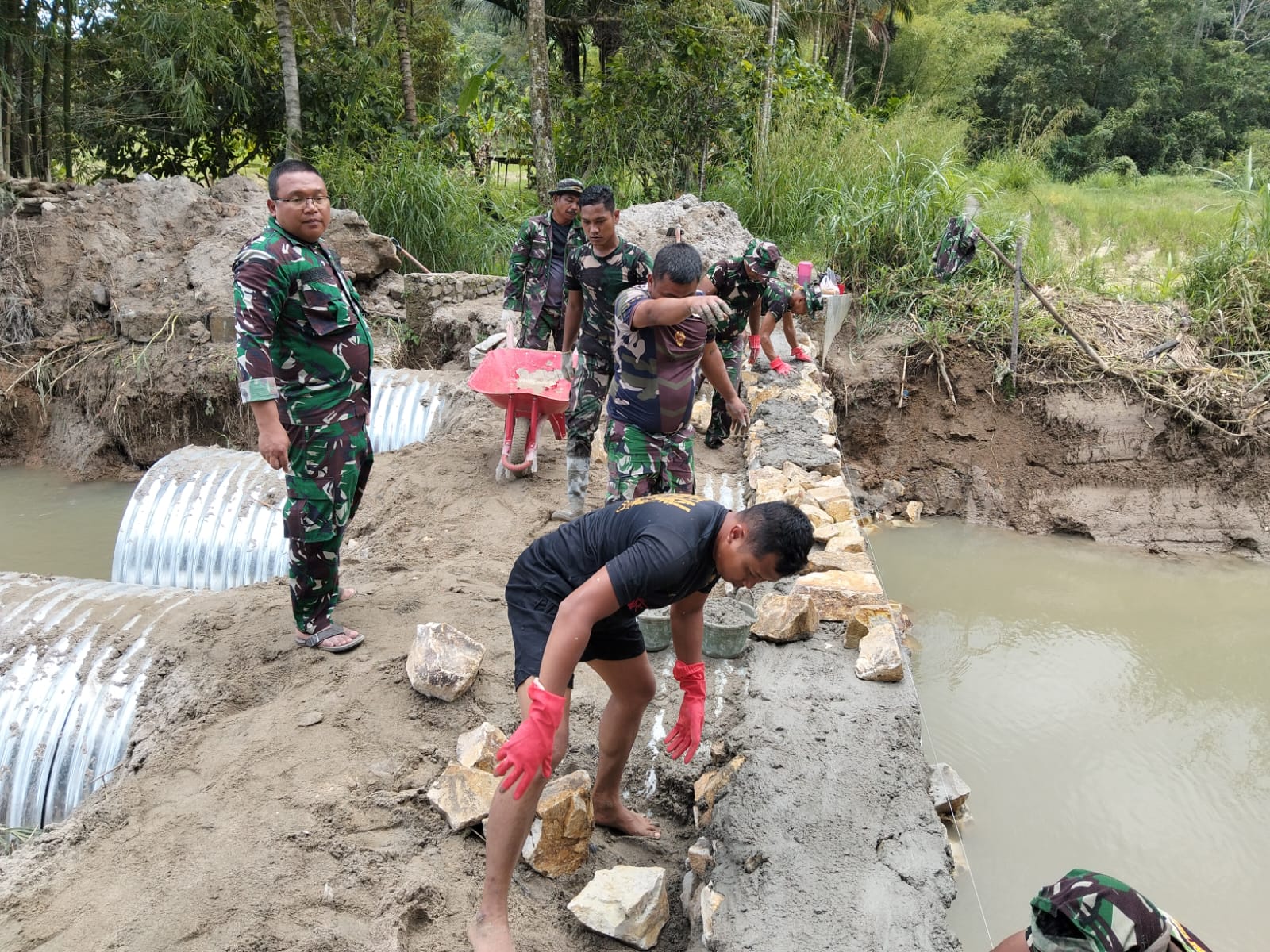 Barometer99.com – Tapanuli Utara, –Satuan Tugas Penanggulangan Bencana (Satgas Gulbencal) Batalyon Zeni Tempur 1/Dhira Dharma (Yon Zipur 1/DD) mulai pengerjaan dan pembangunan jembatan Aramco di Desa Janji Nauli, Kecamatan Purba Tua, Kabupaten Tapanuli Utara (Taput), Sumatera Utara, Sabtu (10/1/2026). Pembangunan ini dilakukan untuk mendukung akses jalan warga menuju area perkebunan.