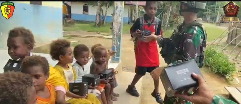 Kita ingin memberikan kebahagiaan terhadap anak anak papua karena senyum dan tawa anak anak ada senyum kami juga selaku personil satgas, selama kegiatan tampak anak anak tersenyum bahagia ketika mendapatkan bingkisan dari pos satgas.