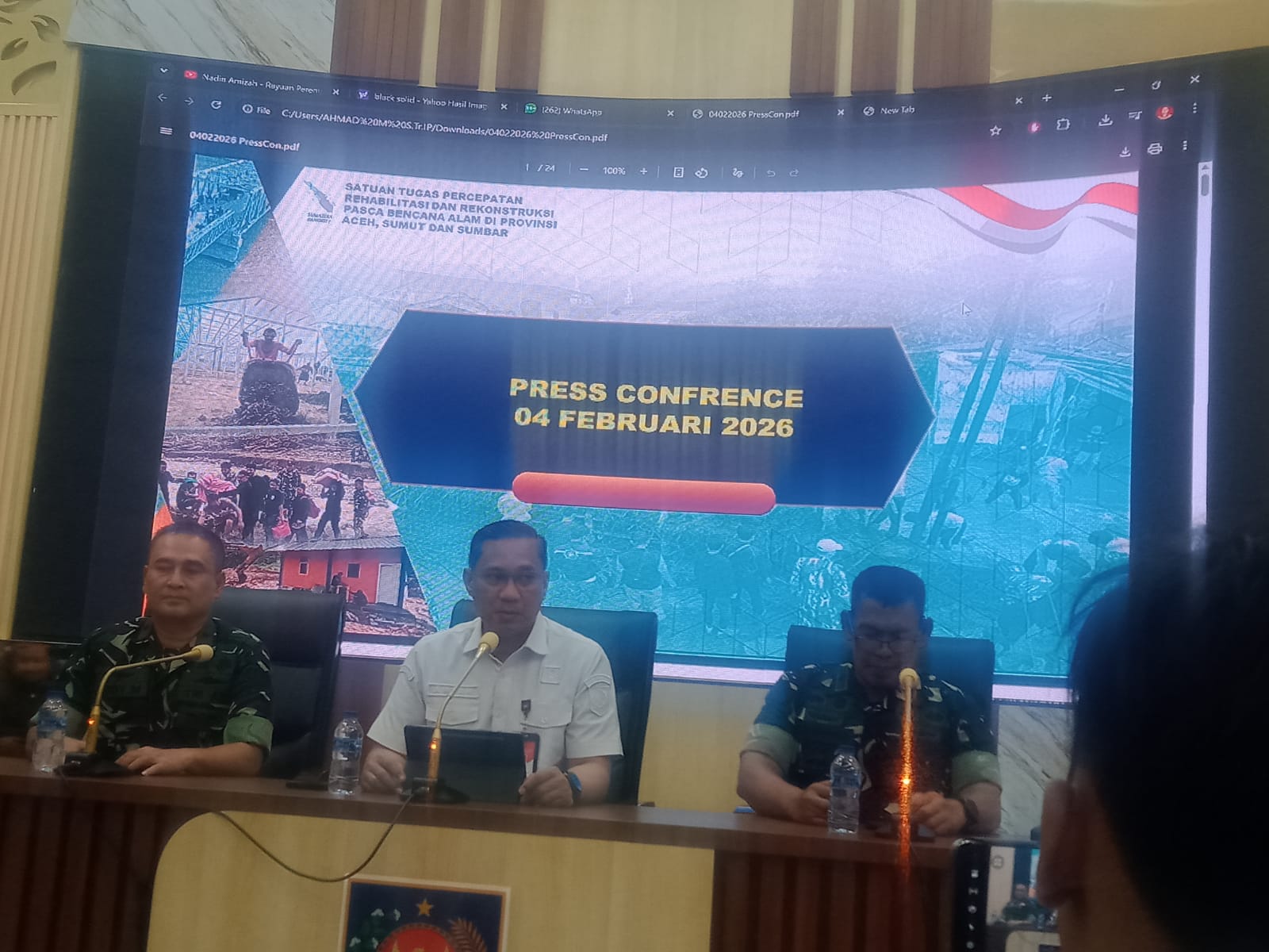 “Pemerintah terus melakukan percepatan rehabilitasi dan rekonstruksi, khususnya pembangunan hunian sementara dan pemulihan fasilitas publik pascabencana,” ujar Amran dalam konferensi pers tersebut.