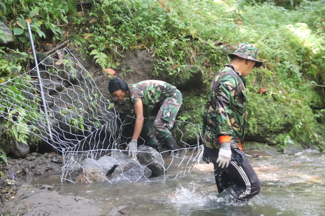 Pasiter Kodim 0732/Sleman kapten Arm Irwan menyatakan, Pemasangan bronjong atau tumpukan batu yang diikat dengan kawat di plengsengan sungai ini bertujuan untuk mencegah abrasi akibat tergerus aliran deras sungai.
